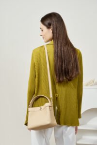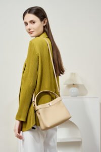 Crafted from premium cowhide leather, this bag combines soft texture with structured durability. Its versatile bucket silhouette makes it easy to carry essentials such as a phone, wallet, and cosmetics.